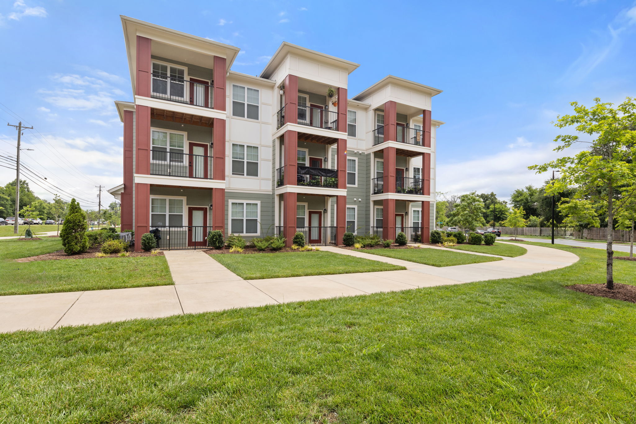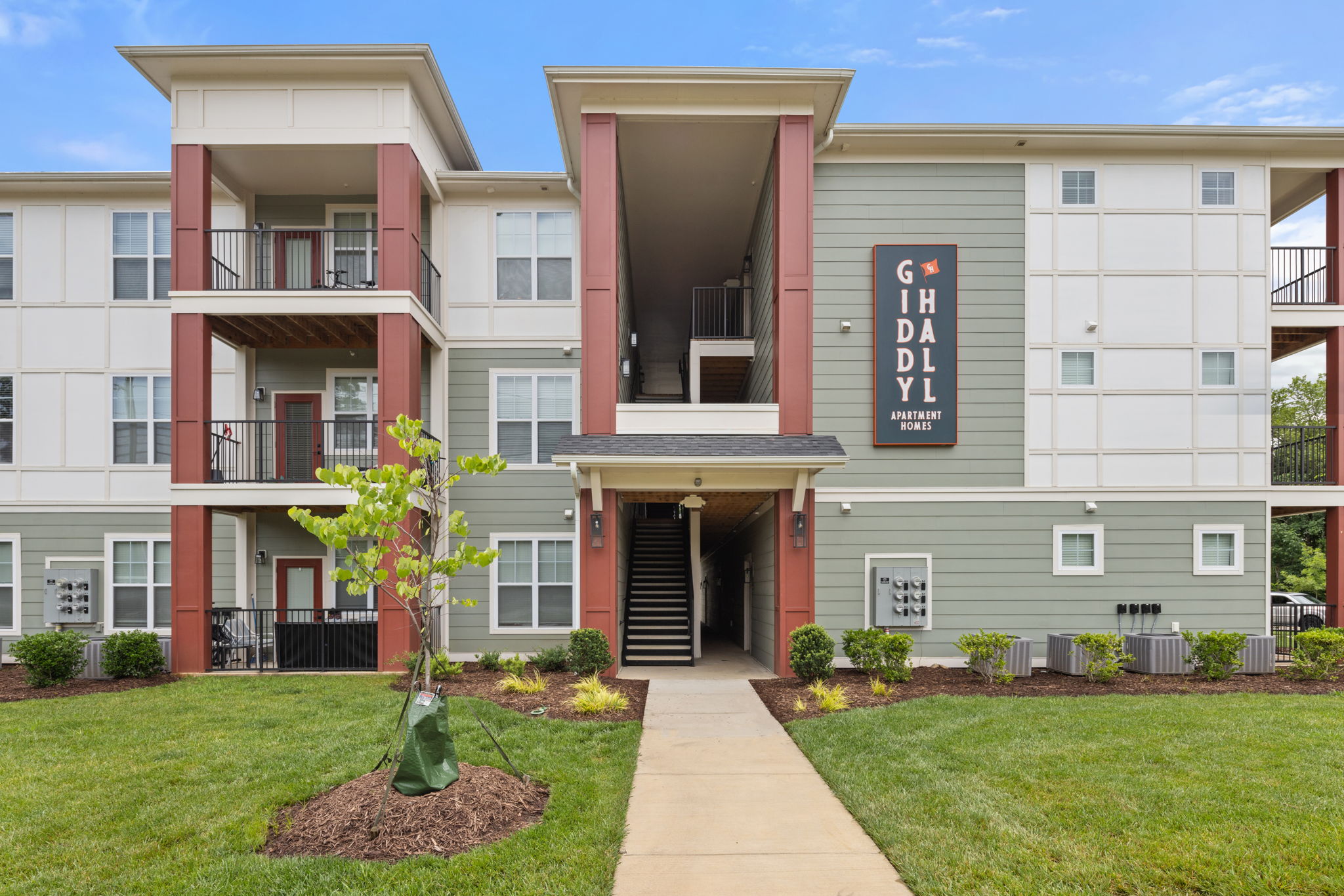 Giddy Hall Apartments is a 171-unit multifamily community in Charlotte, North Carolina, designed to offer modern living with a strong sense of connection and comfort. The five three-story garden-style buildings are organized around shared green spaces and a central clubhouse, encouraging interaction and community among residents. Thoughtful site planning balances density with openness, creating walkable pathways and landscaped areas that tie the development together.