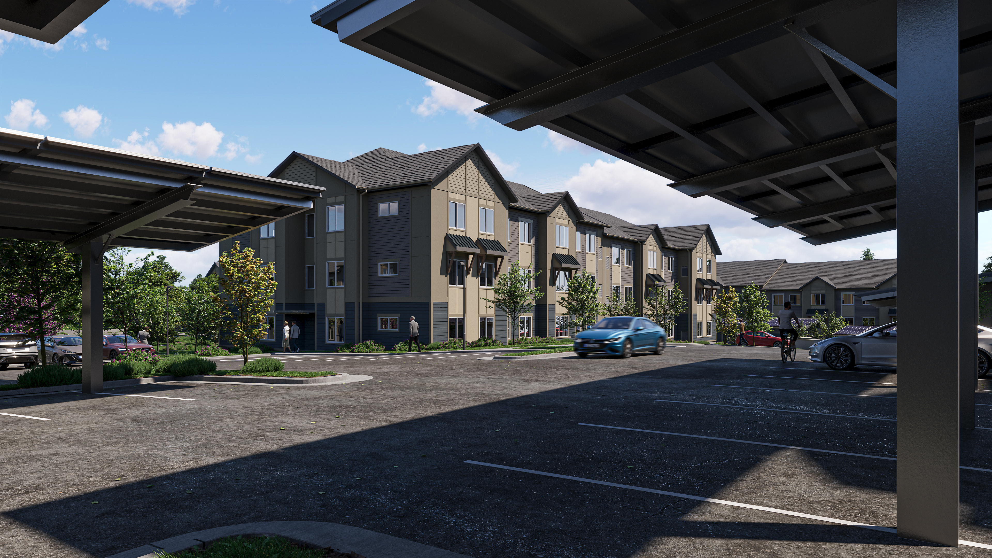 Woody Mountain Apartment is a 221-unit affordable housing development that consists of five 3-story garden style apartments, one 3-story apartment over a covered garage, and a 1-story clubhouse/leasing building. The development will not be a gated community.