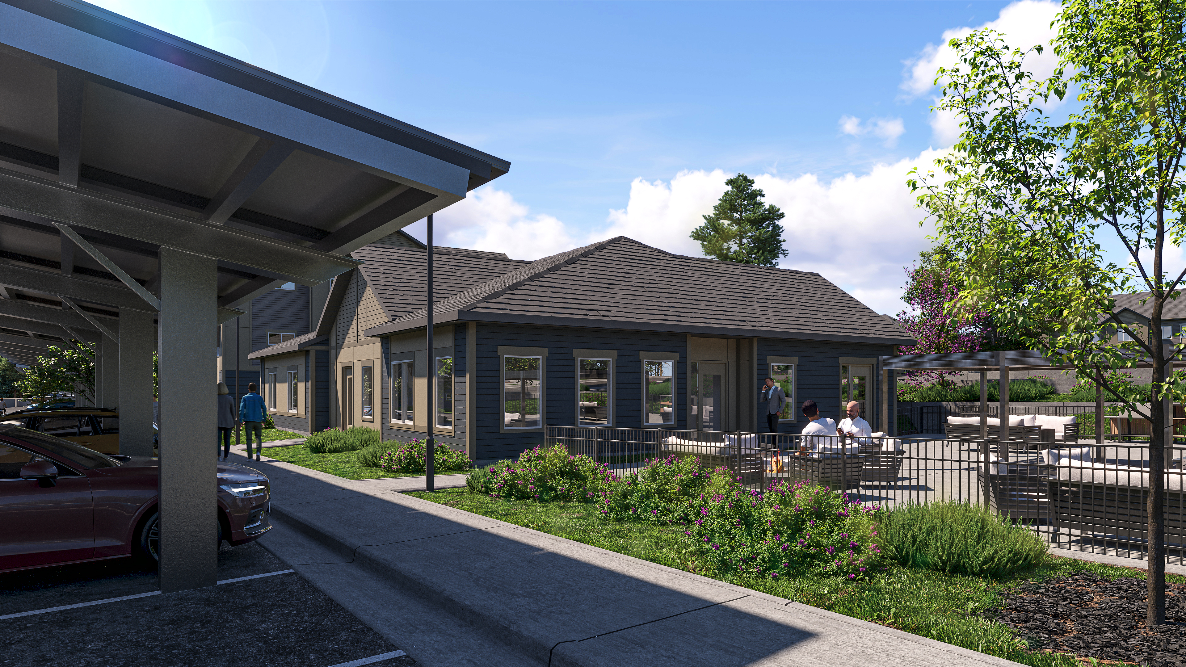 The common amenity areas include both active and passive open space areas. The clubhouse building will feature the leasing office, fitness center, club room, coffee bar, and business center/co-workspace.